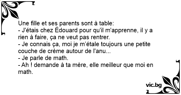- Ah ! demande à ta mère, elle meilleur que moi en math.