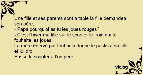 Une fille et ses parents sont a table la fille demandea son père: