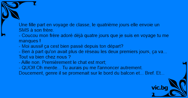 Une fille part en voyage de classe, le quatrième jours elle envoie un SMS à son frère.