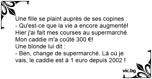 - Ben, change de supermarché. Là où je vais, le caddie est à 1 euro depuis 2002 !