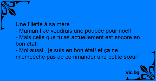 - Moi aussi , je suis en bon état! et ça ne m'empêche pas de commander une petite sœur!