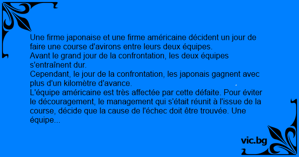 Une firme japonaise et une firme américaine décident un jour de faire une course d'avirons entre leurs deux équipes.