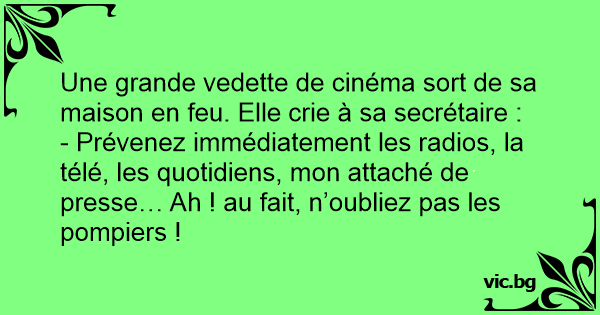 Une grande vedette de cinéma sort de sa maison en feu. Elle crie à sa secrétaire :