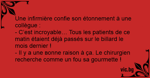 - C’est incroyable… Tous les patients de ce matin étaient déjà passés sur le billard le mois dernier !