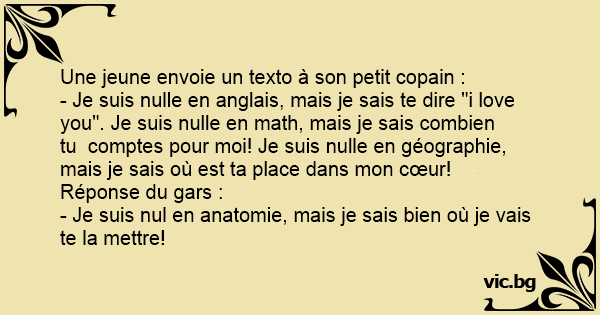 - Je suis nulle en anglais, mais je sais te dire "i love you". Je suis nulle en math, mais je sais combien tu comptes pour moi! Je suis nulle en géographie, mais je sais où est ta place dans mon cœur!