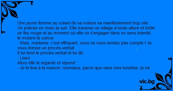 - Je le lirai à la maison, monsieur, parce que sans mes lunettes, je ne vois absolument rien !
