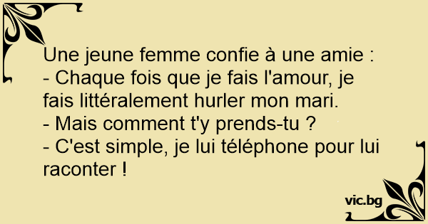 - Chaque fois que je fais l'amour, je fais littéralement hurler mon mari.