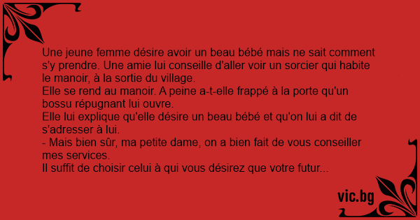 Elle lui explique qu'elle désire un beau bébé et qu'on lui a dit de s'adresser à lui.