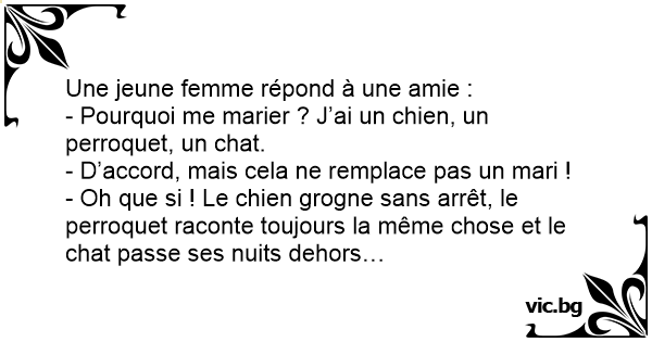 - Pourquoi me marier ? J’ai un chien, un perroquet, un chat.
