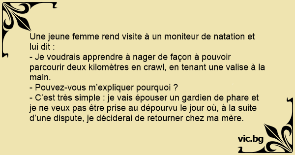 Une jeune femme rend visite à un moniteur de natation et lui dit :