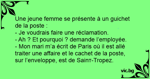 - Mon mari m’a écrit de Paris où il est allé traiter une affaire et le cachet de la poste, sur l’enveloppe, est de Sаinт-Tropez.
