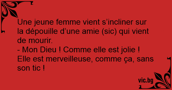 - Mon Dieu ! Comme elle est jolie ! Elle est merveilleuse, comme ça, sans son tic !