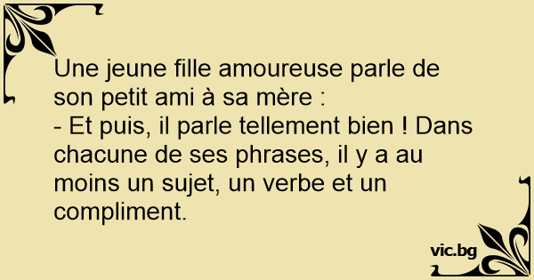 - Et puis, il parle tellement bien ! Dans chacune de ses phrases, il y a au moins un sujet, un verbe et un compliment.