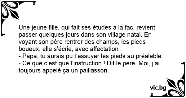 - Ce que c’est que l’instruction ! Dit le père. Moi, j’ai toujours appelé ça un paillasson.
