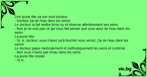 - Si, si, docteur, vous n'avez qu'à toucher vous verrez, j'ai de l'eau dans les seins!