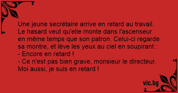 - Ce n'est pas bien grave, monsieur le directeur. Moi aussi, je suis en rетаrd !