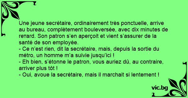 - Oui, avoue la secrétaire, mais il marchait si lentement !