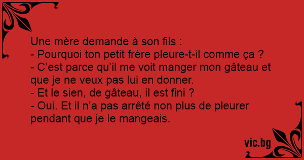 - C’est parce qu’il me voit manger mon gâteau et que je ne veux pas lui en donner.