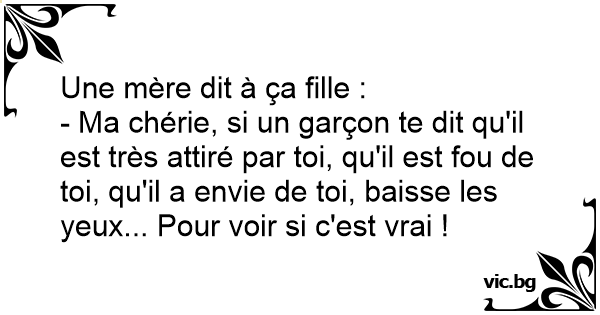 - Ma chérie, si un garçon te dit qu'il est très attiré par toi, qu'il est fou de toi, qu'il a envie de toi, baisse les yeux... Pour voir si c'est vrai !