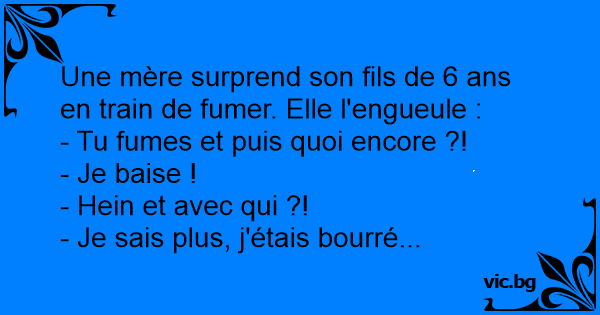 Une mère surprend son fils de 6 ans en train de fumer. Elle l'engueule :