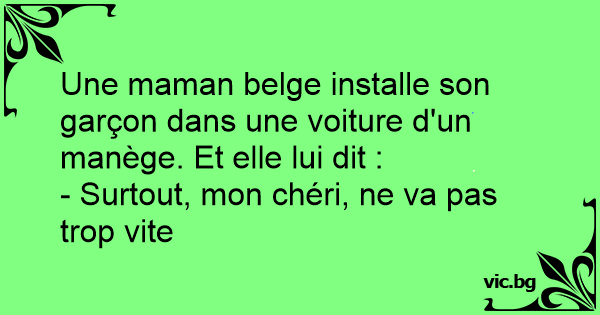 Une maman belge installe son garçon dans une voiture d'un manège. Et elle lui dit :