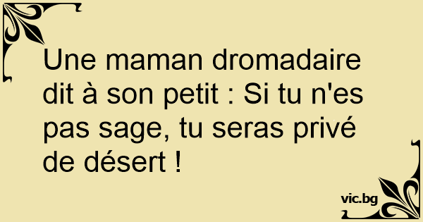 Une maman dromadaire dit à son petit : Si tu n'es pas sage, tu seras privé de désert !