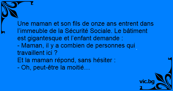 Une maman et son fils de onze ans entrent dans l’immeuble de la Sécurité Sociale. Le bâtiment est gigantesque et l’enfant demande :