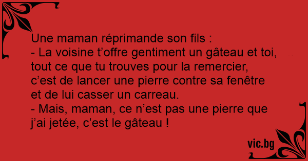 - Mais, maman, ce n’est pas une pierre que j’ai jetée, c’est le gâteau !