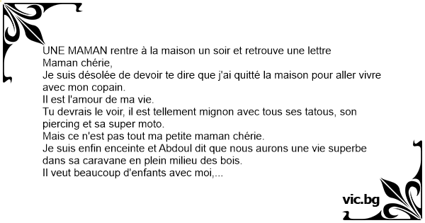 UNE MAMAN rentre à la maison un soir et retrouve une lettre