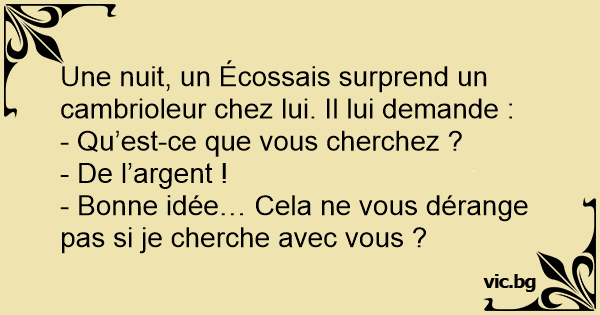 Une nuit, un Écossais surprend un cambrioleur chez lui. Il lui demande :