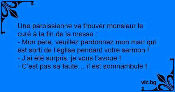 - Mon père, veuillez pardonnez mon mari qui est sorti de l’église pendant votre sermon !
