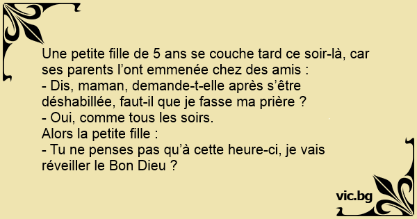 - Dis, maman, demande-t-elle après s’être déshabillée, faut-il que je fasse ma prière ?