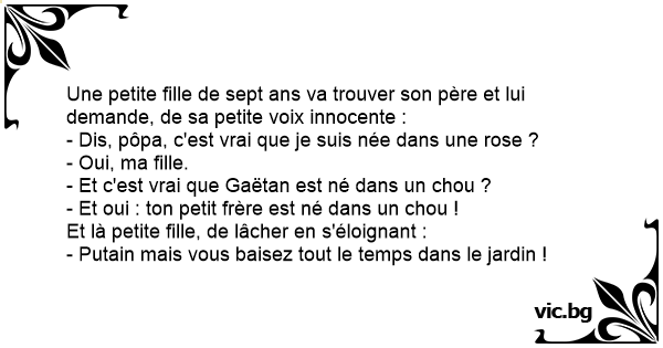 Une petite fille de sept ans va trouver son père et lui demande, de sa petite voix innocente :