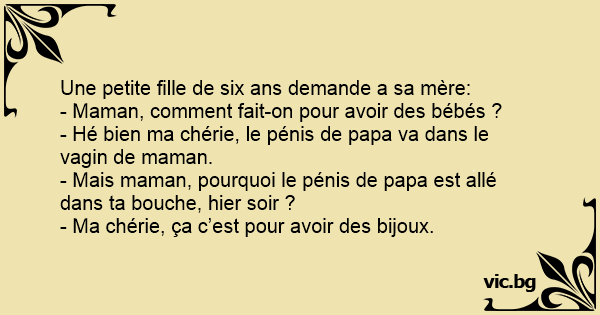 - Mais maman, pourquoi le pénis de papa est allé dans ta bouche, hier soir ?