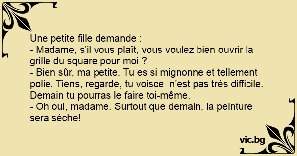 - Madame, s'il vous plaît, vous voulez bien ouvrir la grille du square pour moi ?