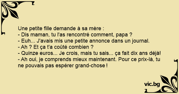 - Ah oui, je comprends mieux maintenant. Pour ce prix-là, tu ne pouvais pas espérer grand-chose !