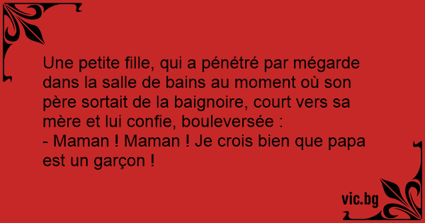 - Maman ! Maman ! Je crois bien que papa est un garçon !