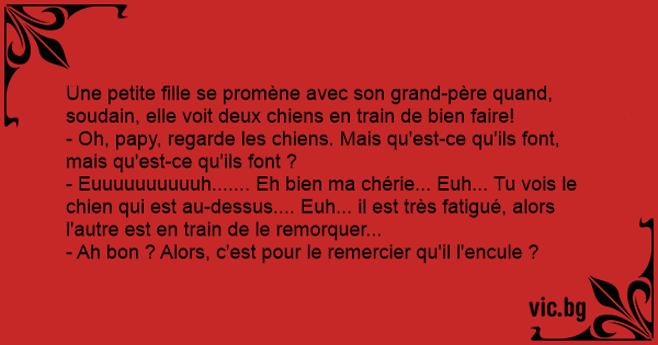 - Oh, papy, regarde les chiens. Mais qu'est-ce qu'ils font, mais qu'est-ce qu'ils font ?