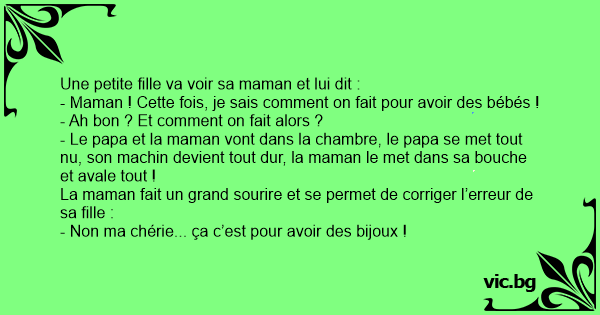- Maman ! Cette fois, je sais comment on fait pour avoir des bébés !