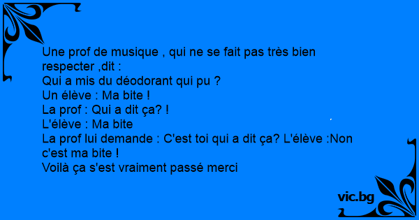 La prof lui demande : C'est toi qui a dit ça? L'élève :Non c'est ma bite !