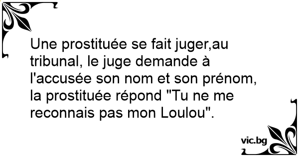 Une prostituée se fait juger,au tribunal, le juge demande à l'accusée son nom et son prénom, la prostituée répond "Tu ne me reconnais pas mon Loulou".