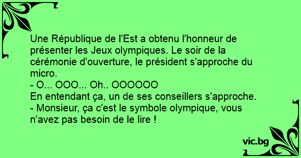 Une République de l'Est a obtenu l'honneur de présenter les Jeux olympiques. Le soir de la cérémonie d'ouverture, le président s'approche du micro.