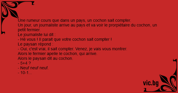 Une rumeur cours que dans un pays, un cochon sait compter.
