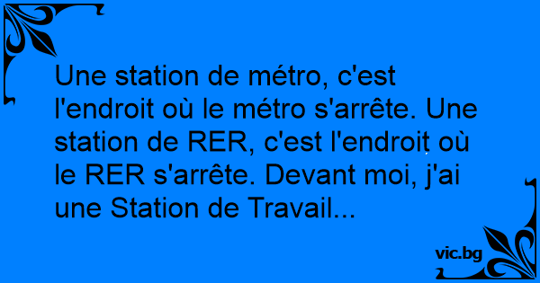 Une station de métro, c'est l'endroit où le métro s'arrête. Une station de RER, c'est l'endroit où le RER s'arrête. Devant moi, j'ai une Station de Travail...