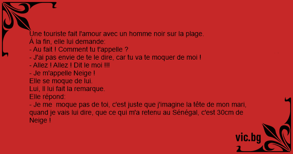 - Je me moque pas de toi, c'est juste que j'imagine la tête de mon mari, quand je vais lui dire, que ce qui m'a retenu au Sénégal, c'est 30cm de Neige !