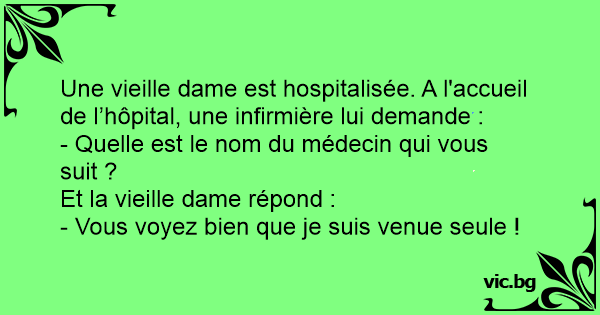 Une vieille dame est hospitalisée. A l'accueil de l’hôpital, une infirmière lui demande :