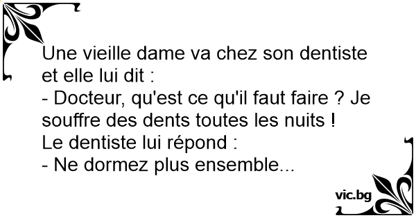 - Docteur, qu'est ce qu'il faut faire ? Je souffre des dents toutes les nuits !