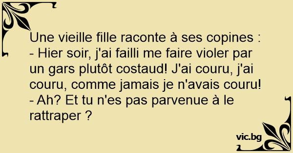 - Hier soir, j'ai failli me faire violer par un gars plutôt costaud! J'ai couru, j'ai couru, comme jamais je n'avais couru!
