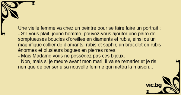 Une vielle femme va chez un peintre pour se faire faire un portrait :