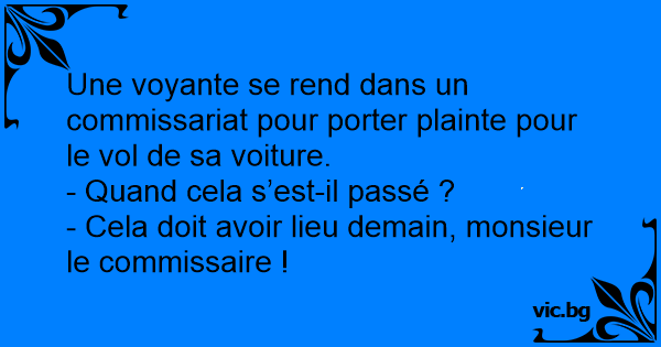 Une voyante se rend dans un commissariat pour porter plainte pour le vol de sa voiture.